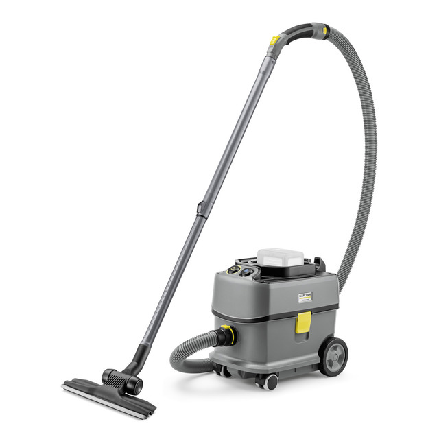 T 10/1 Bpは、便利なコードレスながらコード式並みの高い吸引力・10Lの集塵容量と大容量バッテリー(※)で長時間作業が可能ですので効率的です。また、身長に合わせて伸縮可能なアルミ伸縮サクションパイプを標準同梱。コーナーノズル、ハンドノズルはバッテリーとともに本体上面に格納されより使い易くなりました。